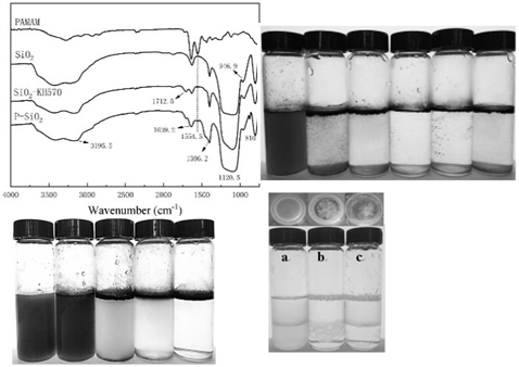 摘要:本发明公开一种超支化聚合物‑SiO2复合破乳剂及其制备方法和应用。该制备方法包括以下步骤:将1,3‑丙二胺与丙烯酸甲酯进行搅拌反应,得到超支化聚合物;将硅烷偶联剂与纳米二氧化硅混合反应,得到表面硅烷改性的纳米二氧化硅;将超支化聚合物和表面硅烷改性的纳米二氧化硅混合反应,得到超支化聚合物‑SiO2复合破乳剂。本发明通过将超支化聚合物与无机材料纳米SiO2复合,得到了一种能在常温下使用的破乳剂,该破乳剂具有较高的耐盐性能,且使用量少,可实现对水包油型原油乳液的高效率破乳。