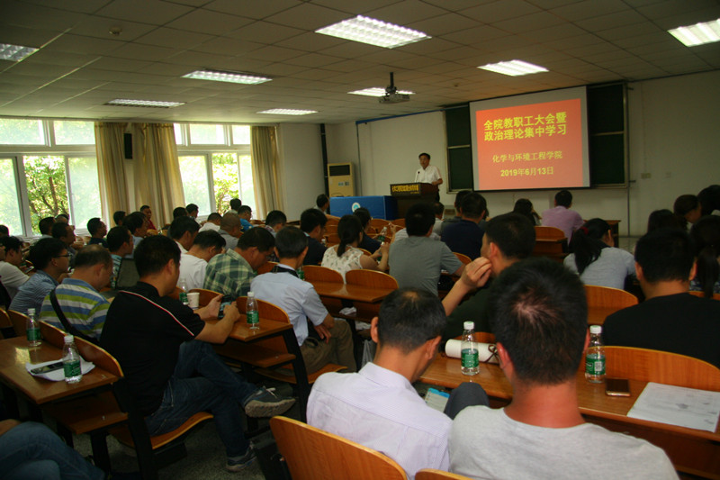 2019年6月13日,英国上市公司官网365在14-北-201召开了全院教职工大会,经理陈武为全体教职工讲党课。