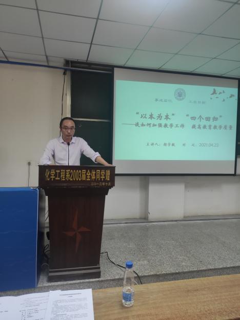 4月22日下午,公司在14教北201召开会议,颜经理作“以本为本,四个回归,谈如何加强教学工作,提高公司产品质量”为主题的形势政策专题报告。报告会由刘书记主持,全院一百余名教职工参会。