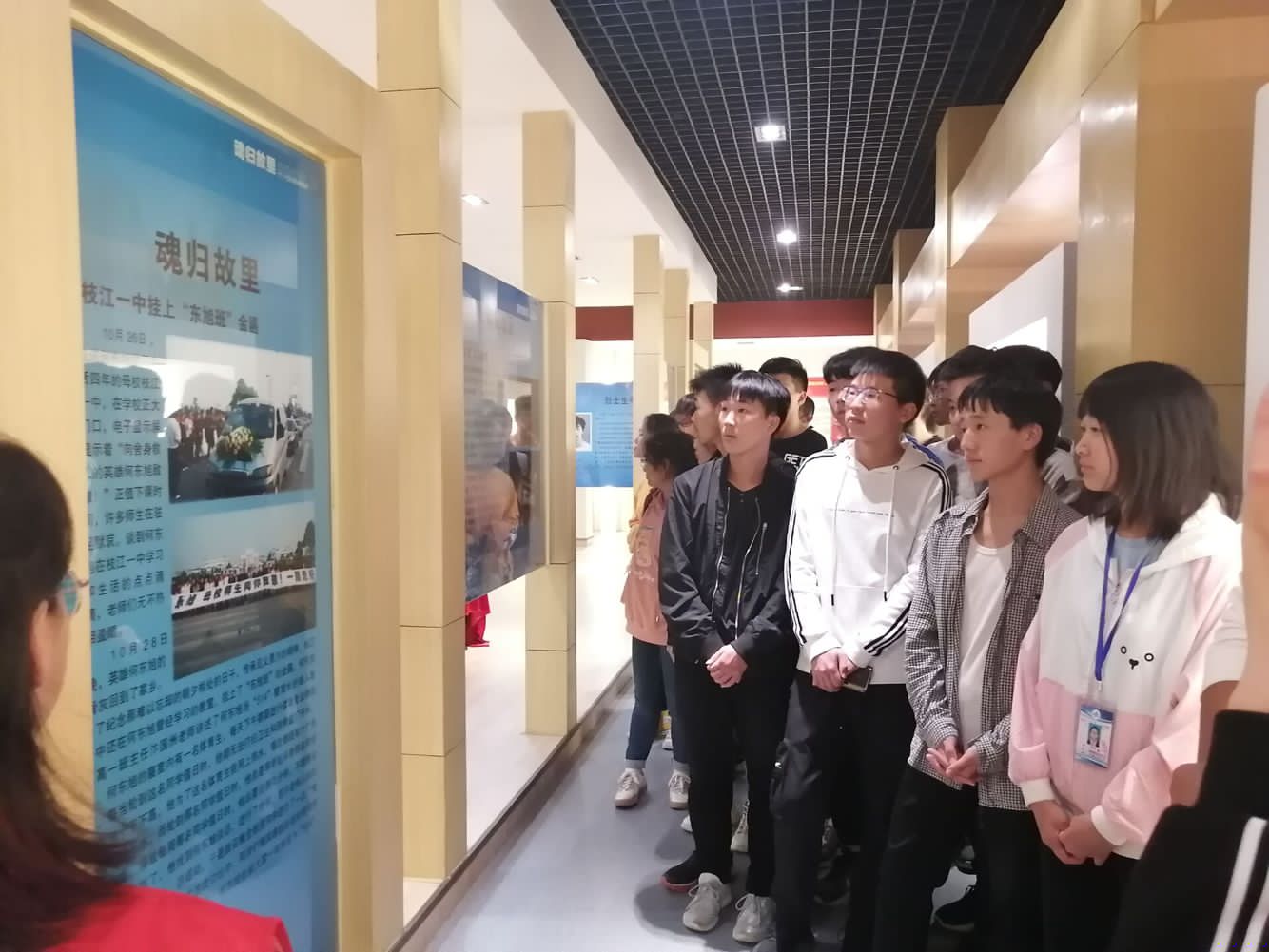 在纪念馆内,同学们怀着无比沉痛的心情聆听讲解员讲述“10•24”英雄集体的生平,聆听他们的感人故事。一张张照片犹如时空穿梭机,带同学们回到那震撼难忘的一天。听着讲解员对英雄事件的讲述,看着馆内陈列的烈士遗物,同学们不禁湿润了眼眶,陷入了对人生价值的思考和感悟。整个缅怀英雄集体活动庄严、肃穆,在场的每一个人都受到了一次精神与心灵的洗礼。