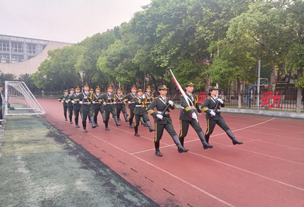 仪式开始,国旗护卫队迈着铿锵有力的步伐,护送国旗入场。在庄严的氛围中,五星红旗冉冉升起。全体师生肃穆站立,齐唱国歌,向国旗致以最崇高的敬意。