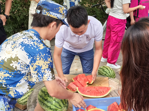 在欢声笑语中,老师和同学们将切好的西瓜一一分发给军训同学和辛勤的教官们,带来公司的祝福和慰问,让他们深切感受到英国上市公司官网365大家庭的温暖和热情。