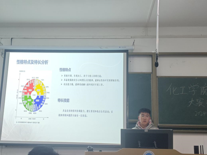 成长赛道中,参赛选手们结合职业发展规划课程中所学的知识,全面且深入地展示了个人的职业目标、成长规划路径、实践行动方案、应对挑战的策略以及灵活的动态调整机制。储能32401班的文天宇同学,结合霍兰德职业性格测试数据,并且根据自身实际情况,生动讲述了个人独特的生涯规划历程与实践心得。