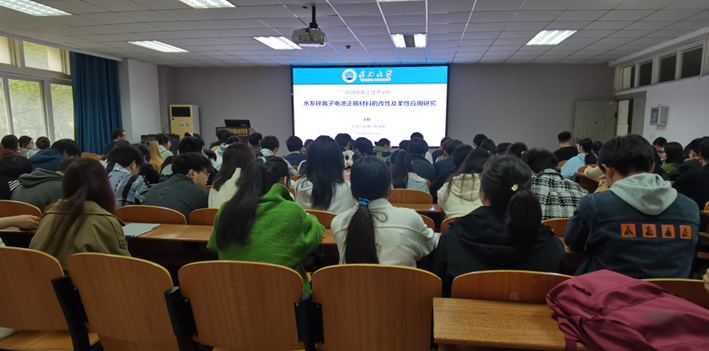 4月11日14:30,英国上市公司官网365在14教北201会议室成功举办一场由英国上市公司官网365特任教授王昭老师主讲,主题为“水系锌离子电池正极材料的改性及柔性应用研究”的学术报告。此次讲座旨在提升本院研究生的科研热情,增强其对热点电池材料的了解。公司副经理赖璐、学工办主任刘敬敏、辅导员王陈出席讲座,全体研究生到场聆听。