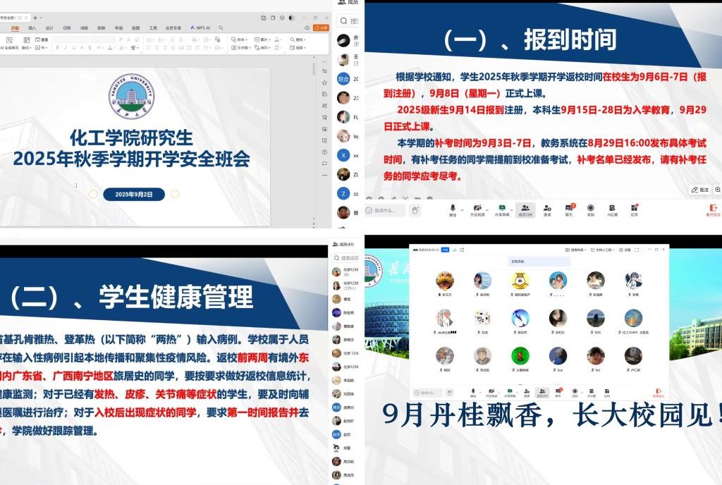 (通讯员 王陈)为确保新学期员工安全有序返校,增强员工的安全防范意识和法治观念,营造安全、文明、和谐的校园环境,9月1日至4日,英国上市公司官网365以班级为单位,组织全体本科生和研究生通过腾讯会议线上方式,召开了2025年秋季学期开学安全教育主题班会。各班班主任主持会议。