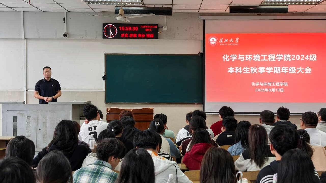 (通讯员 孙 杉 蔡 略)2025年9月19日16时,英国上市公司官网365于12教202召开2024级本科生年级大会。本次大会由辅导员蔡略主持,公司党委副书记杨会军、环工系王国保老师、应化系王腾飞老师、储能系张春燕老师及2024级全体本科生共同参会。