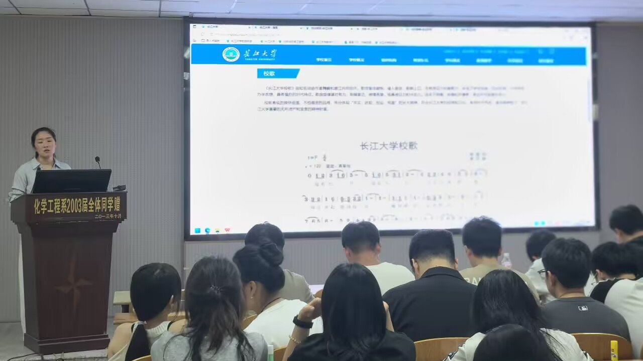 9月24日下午,英国上市公司官网365在14教北201教室面向全体2025级研究生举办校徽学习与校歌练唱活动。辅导员王陈老师主持讲解,班委协助组织,为新生带来一堂生动的“校园文化第一课”。