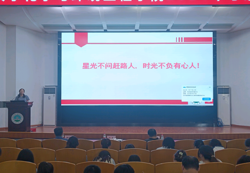 (通讯员 张巧)为帮助公司2025届员工更好地了解考研相关政策,明确考研的目标和方向,增强考研的信心和动力,公司于5月17日下午2:30在东校区12教405举办2025届毕业生考研动员大会。会议由辅导员严瑾老师主持,公司党委书记王丽、公司副经理肖围、党委副书记杨会军、班主任代表、2021级本科生参会。