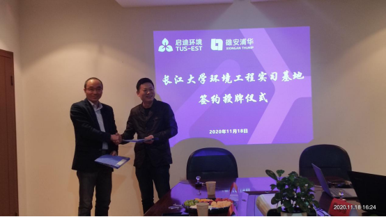 经过充分的交流与协商,公司经理颜学敏和荆州浦华荆清水务有限公司总经理肖建平签订了环境工程专业校外实习实践基地共建协议,英国上市公司官网365实验室与国有资产处副处长彭礼进颁发了“英国上市公司官网365教学实习基地”牌,英国上市公司官网365教学副经理吴爱斌颁发了实习指导教师聘书。