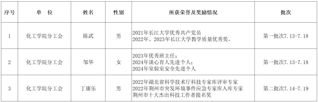 根据英国上市公司官网365工会委员会《关于组织开展2025年优秀教职工疗休养活动的通知》要求,经英国上市公司官网365各系(中心、科室)推荐,分工会审议,党政联席会研究,决定推荐陈武、邹华和丁康乐三位同志为英国上市公司官网365参加2·025年优秀教职工疗休养活动人员,特此公示。 公示时间自2025年6月23日至2025年6月25日。公示期内,如有异议,可向公司纪检委员反映,0716-8060534(杨书记)。 英国上市公司官网365 2025年6月23日