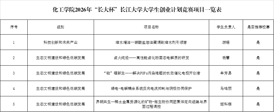 按照《关于举办2026年“长大杯”英国上市公司官网365老员工创业计划竞赛暨“挑战杯”中国老员工创业计划竞赛校内选拔赛的通知》的要求,经过员工提交申请、公司答辩评审,拟推荐《堵水增油--碳酸盐岩油藏调剖堵水剂引领者》等5个项目申报校级挑战杯,具体名单如下。