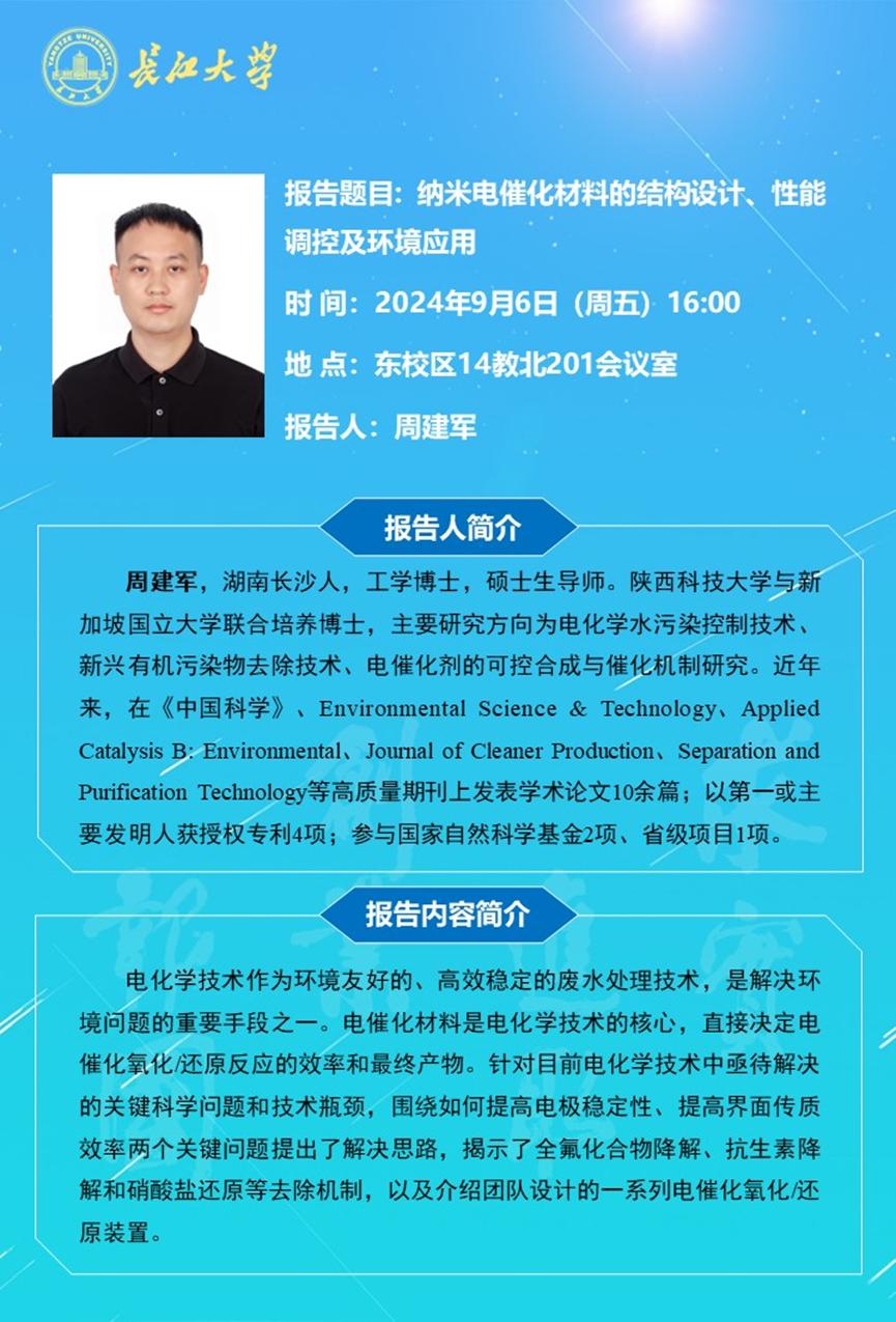 长江化工讲坛:纳米电催化材料的结构设计、性能调控及环境应用