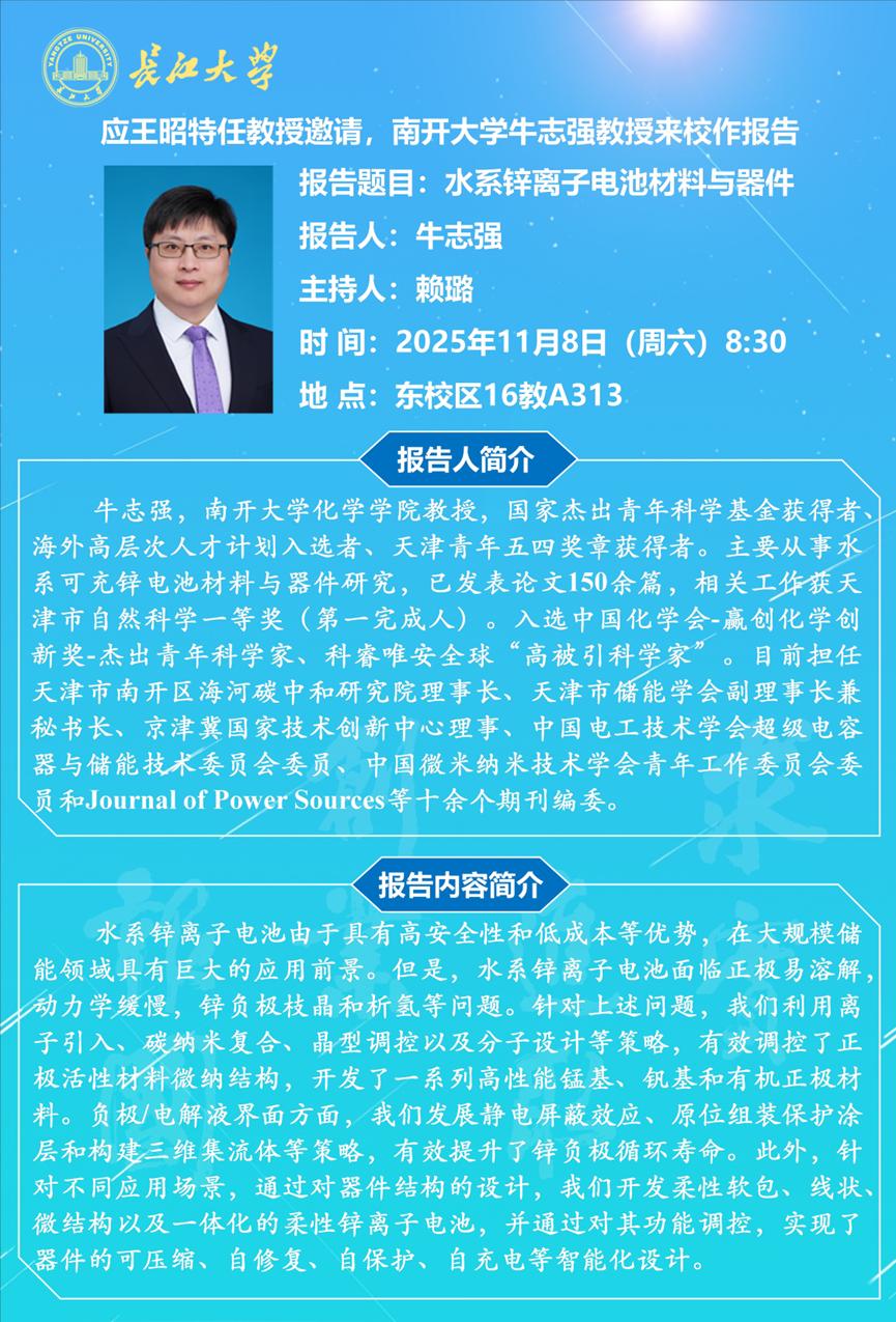 长江化工讲坛:水系锌离子电池材料与器件