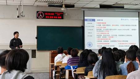 在竞赛经验分享环节,白建设介绍了挑战杯、国创赛、化工设计竞赛等不同级别赛事,鼓励同学们根据自身规划积极参与。他结合自己斩获多项专利、论文及各级奖项的经历,强调科研成长需“主动争取机会”“耐得住寂寞”,既要注重团队协作沟通,也要保持对科研的执着与定力。